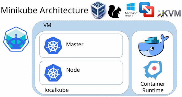 Minikube의 아키텍쳐를 보면 하나의 VM에 Master와 Node가 구성되어 있고,